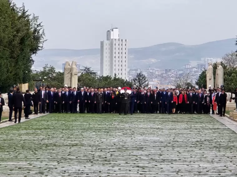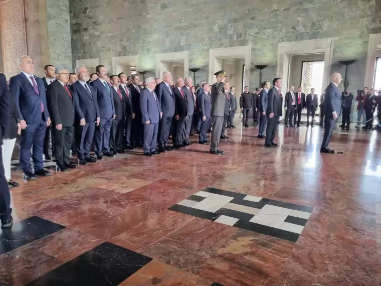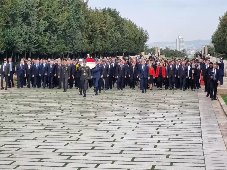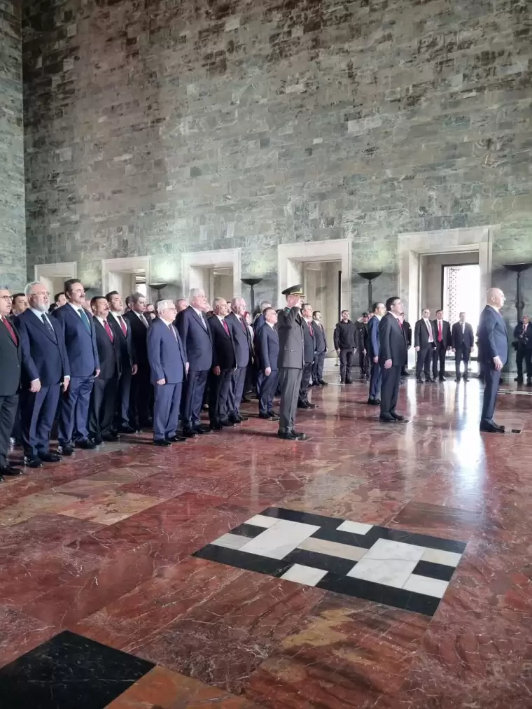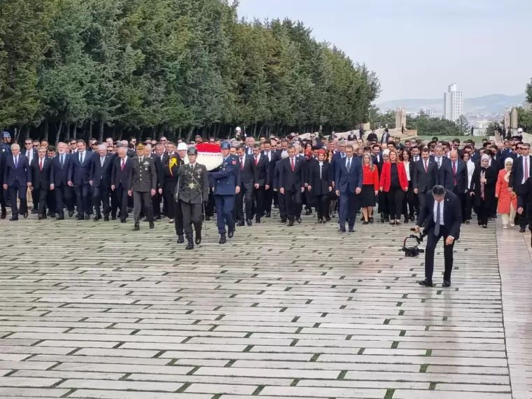 Anıtkabir’e TBMM Başkanı Numan Kurtulmuş, Cumhurbaşkanı Yardımcısı Cevdet Yılmaz, CHP Genel Başkanı Özgür Özel, İYİ Parti Genel Başkanı Müsavat Dervişoğlu, Aile ve Sosyal Hizmetler Bakanı Mahinur Özdemir Göktaş, Milli Eğitim Bakanı Yusuf Tekin, Sağlık Bakanı Kemal Memişoğlu, AKP Genel Başkan Vekili Efkan Ala, TBMM Başkanvekili Celal Adan, AKP Grup Başkanı Abdullah Güler ve TBMM Başkanvekili Bekir Bozdağ katıldı.
