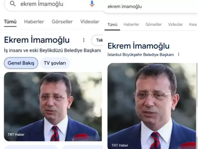 Ekrem İmamoğlu’nun ‘İstanbul Büyükşehir Belediye Başkanı’ olan ünvanı, Google arama motorunda büyük bir hızla, ‘iş insanı’ ve ‘eski Beylikdüzü Belediye Başkanı’ olarak değiştirildi. İmamoğlu’nun ünvanı konusunda yapılan söz konusu güncellemenin, İmamoğlu’nun tutuklandığı gün yapıldığı belirtilirken, bu hızlı değişim sosyal medyada geniş yankı uyandırdı. Sosyal medya kullanıcıları tarafından Google’ın hızı bu defa eleştirildi.