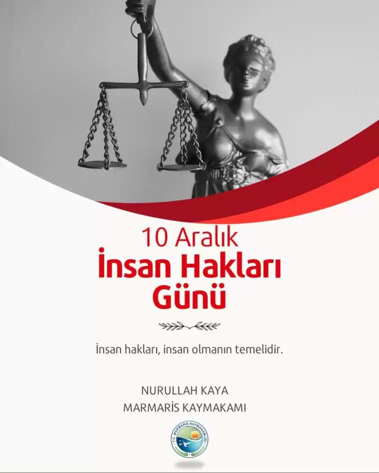 Marmaris Kaymakamı  Nurullah Kaya,10 Aralık Dünya İnsan Hakları Günü dolayısıyla bir mesaj yayınladı: