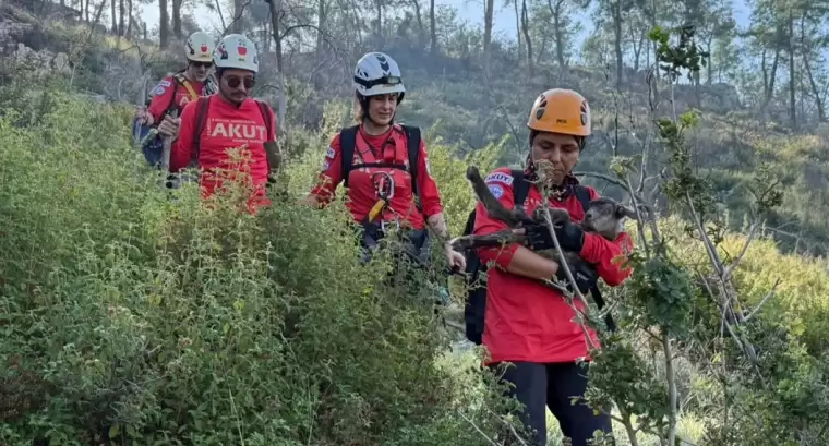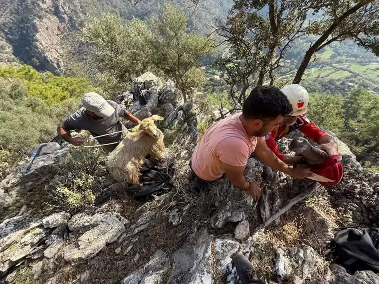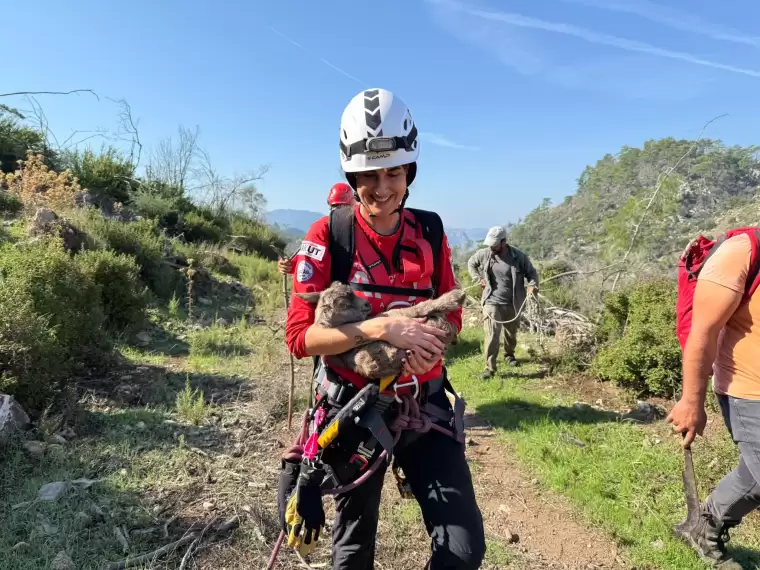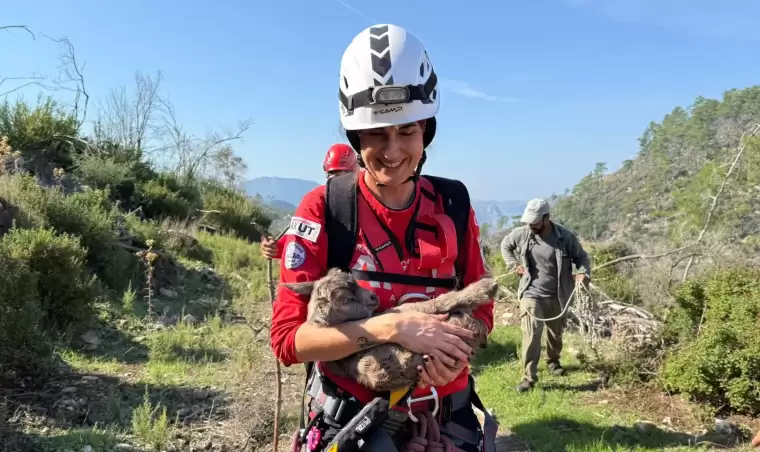Marmaris, Turgut mahallesinde, mahsur kalan yavru keçi ve annesi AKUT ekibi tarafından özel operasyonla kurtarıldı.